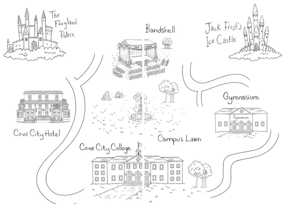 Cove City is quite large, with its own baseball team, the Cove City Gulls. There is a bandshell near the waterfront, where events can be held. Cove City also has its own hotel, zoo and park. There is the Cove City College, with a gymnasium on its large campus.