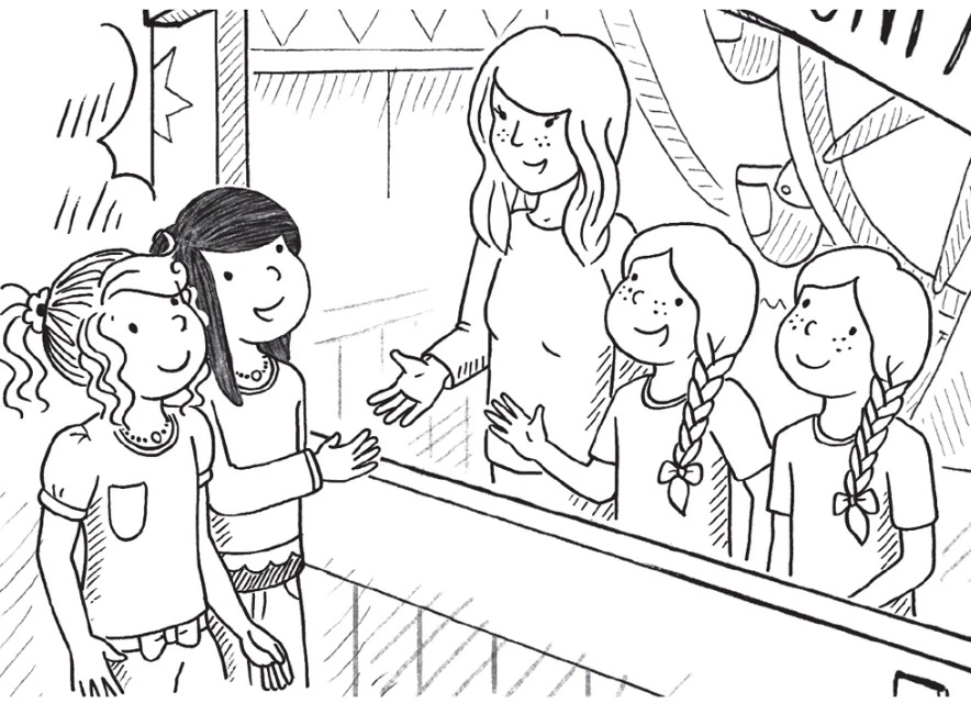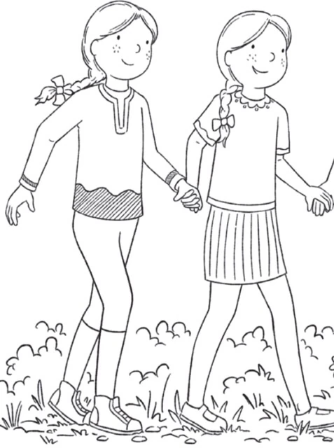 Both girls are described as having long blonde plaits and freckled noses. They are hard to tell apart but Matilda usually wears a skirt and Georgia wears leggings.