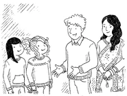 Mrs Anand is a middle aged woman. She has long wavy black hair and is seen wearing 'a glittering sari', bangles