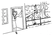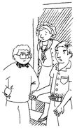 Mrs Burke runs the post office in Wetherbury Village. Kirsty and Rachel see her standing in front of the shop, looking grumpy as two of her customers argue outside. Once the girls have returned Pearl's magical feather, she is much happier and waves to them as they walk home.