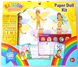 The Rainbow Magic Paper Doll Kit is an activity kit of paper dolls at features all the Rainbow Fairies.