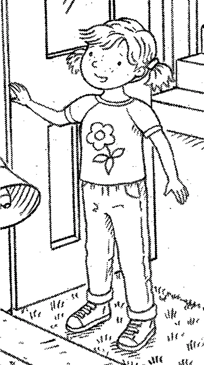 Rose is a young white girl with blonde hair held in two pigtails. She wears a t-shirt with a flower graphic and jeans.