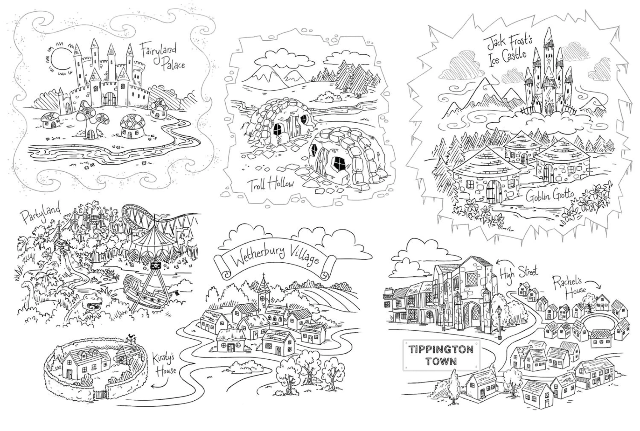 The trolls live in Troll Hollow, a small village near the mountains with cobblestone huts where the trolls live in. The entrance is marked by a bridge and a sign discouraging trespassers.